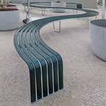 Die fugenlose Sitzfläche aus Kunststoff zeichnet die neue Stadtmöbel-Serie aus.