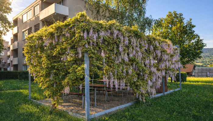 Rankgerüste dienen als tragende Strukturen für Kletter- und Rankpflanzen und werden im Aussenraum an Fassaden, Mauern oder als freistehende Konstruktionen eingesetzt. Sie unterstützen das Wachstum der Pflanzen und strukturieren den Raum gestalterisch.