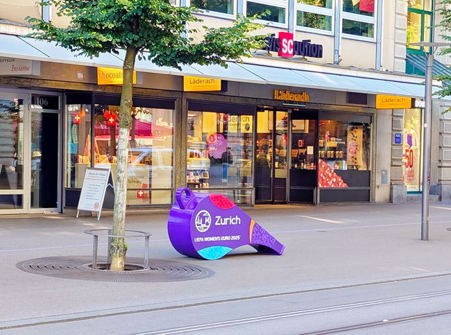 Für die Frauen-Fussball-Europameisterschaft konstruierten und produzierten wir übergrosse Trillerpfeifen für den öffentlichen Raum.