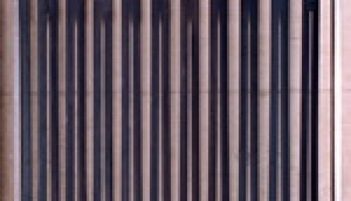 Muster "Plexus V" Gestrecktes Blech mit vertikalen Schlitzen in Rahmen verschweisst. Design: Samu…